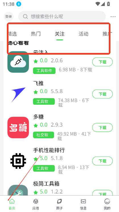 2、点击“应用板块”或“游戏板块”,浏览分类内容;