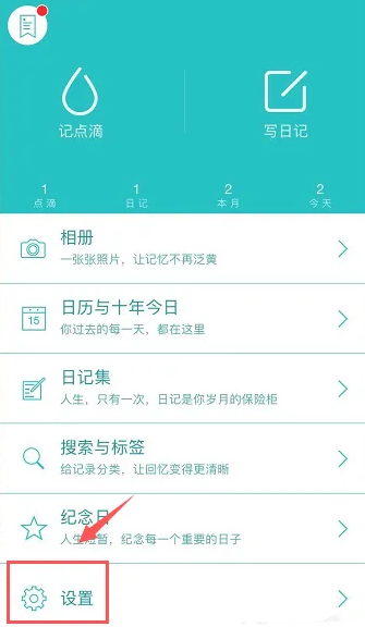 1、打开青橙日记安卓版后,在首页点击底部的“设置”进入功能选项。
