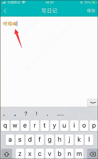 5、进入写日记页面,输入文字,就可使用新的字体颜色进行记录了。