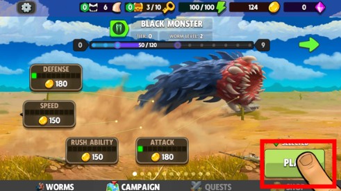 启动最新版本,点击右下角的按钮,就能正式开启蠕虫的狩猎之旅了。
