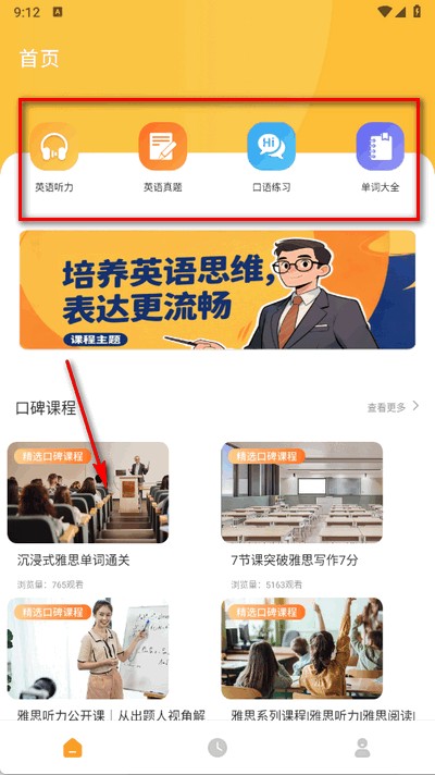 1、打开每日一句英语进入软件首页,这里有多种功能,用户可以选择你所需功能