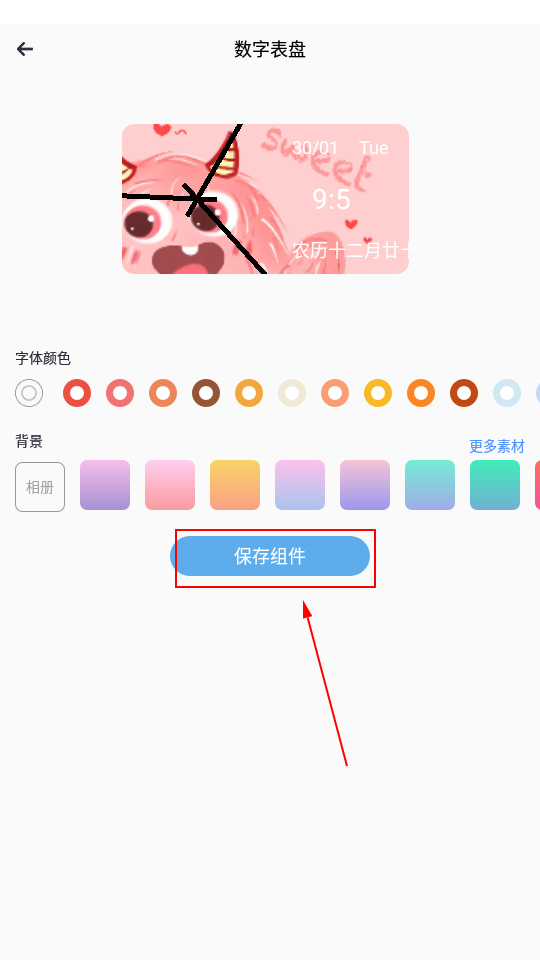 3、用户挑选了喜欢的小组件样式后,还能够自定义小组件的详细设置,例如字体、北京等,点击【保存组件】即可储存更改。