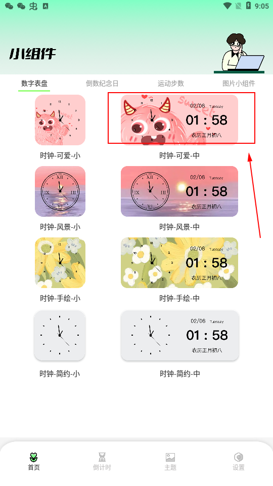 2、用户可以在首页中自由选择自己喜爱的小组件来进行设置。