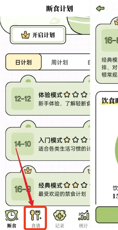 2、随后用户将进入断食板块,只需选择对应的挑战计划就行