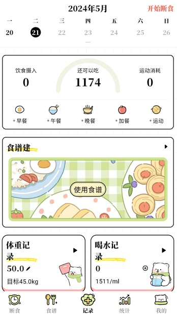 会定时提醒你喝水,避免忙碌时忘记补充水分;还能精准记录断食的时长与时间段,让轻断食的效果更显著!
