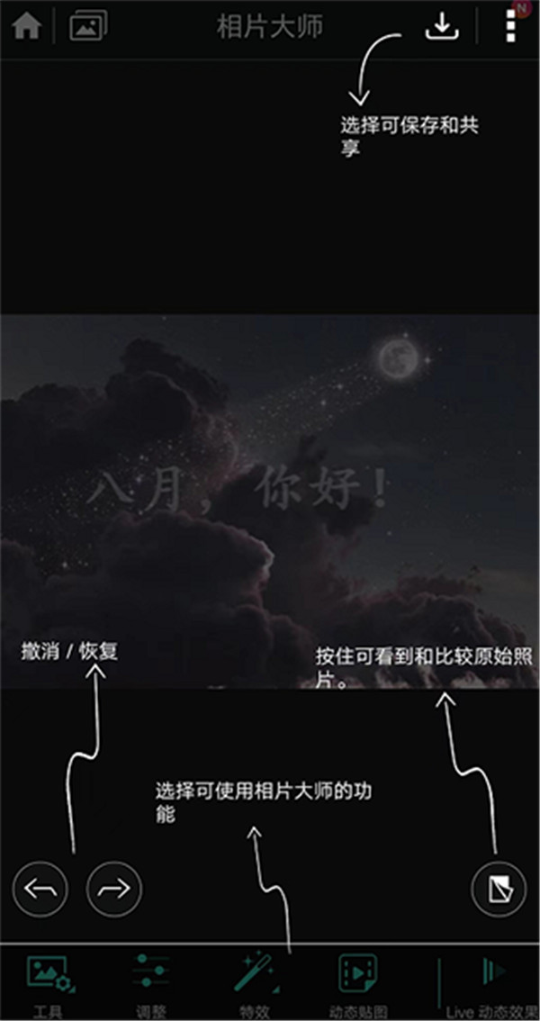 1.收录了丰富的相片预设功能,让用户可以在拍照的时候自动切换。