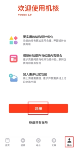 1、并安装机核App,注册或登录账号;