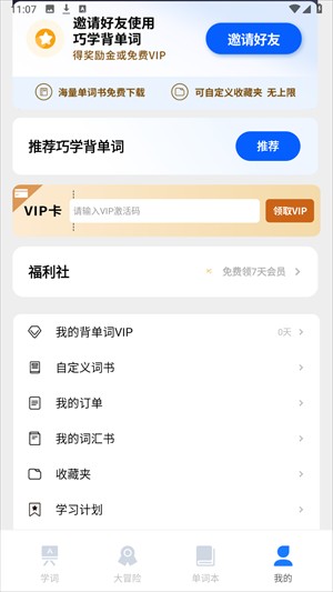 4、进入【我的】界面后,用户能够在个人中心里开展自定义背单词的操作,并且可以设置符合自身情况的学习计划。