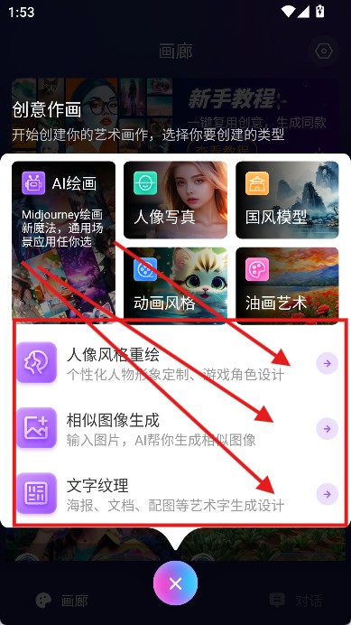 1、打开Midjourney绘画后,在软件选择一个要复用的创意;