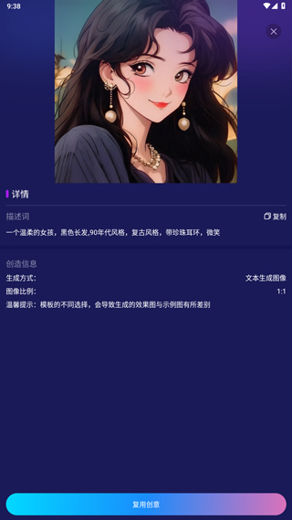2、点击进入后可以看到图片详情,点击【复用创意】选项;
