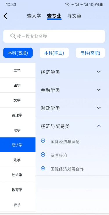4、查看推荐列表时,玩家可按兴趣进行筛选调整,支持按院校类型、地区、录取批次筛选院校,也可根据专业类别或学科名称精准查找目标方向。