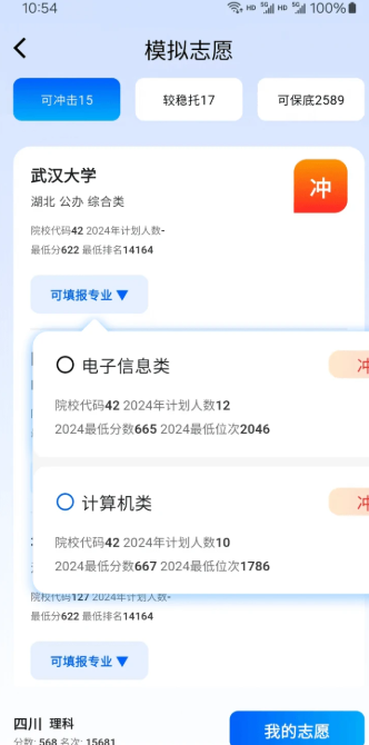 2、志愿填报稳定可靠,支持多种保底和冲刺学校的智能选择。