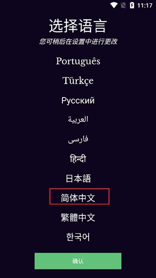 2、用户可选择“简体中文”,点击该选项就能切换界面语言。