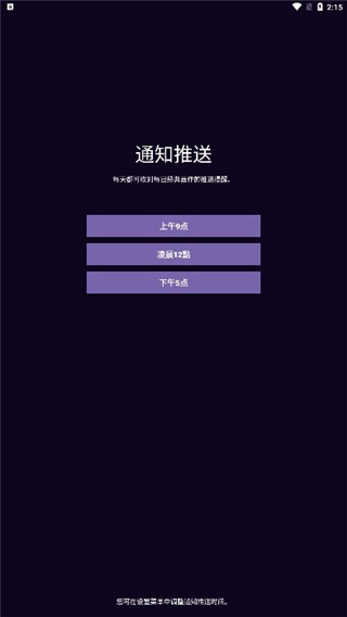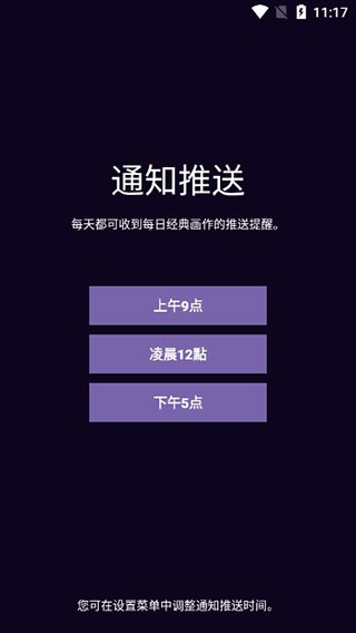 3、接下来你可以设置每日推送提醒的时间,早晨或晚上都能选,看画作的习惯由你自己决定。