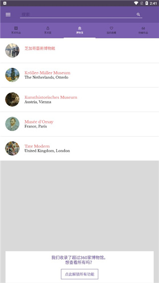 1、让用户能够探索并查找包含3000多幅名作的收藏品。