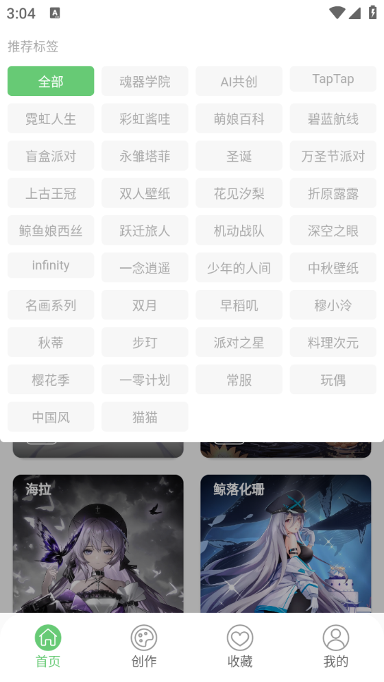 完成标签选择后,点击“开始创作”按钮,即可着手制作专属壁纸。