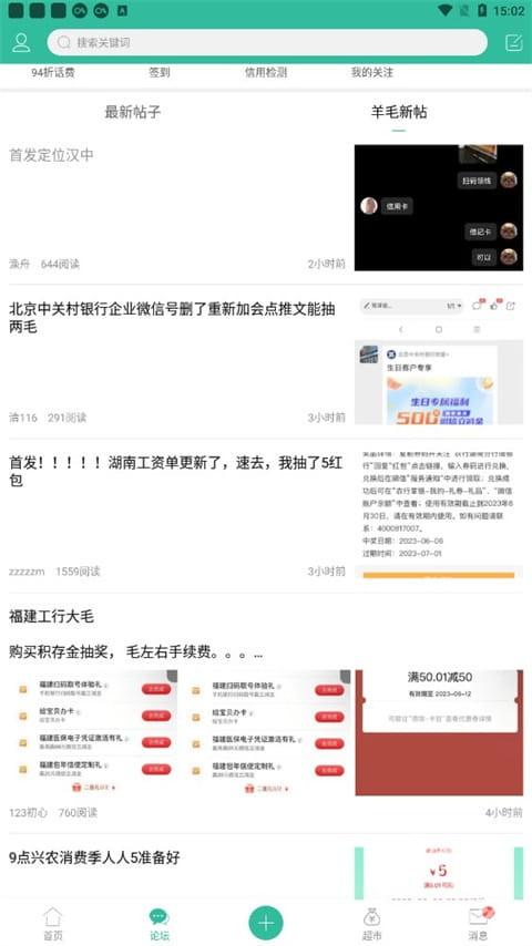 5、点击论坛,还能查看最新帖子与羊毛新帖,另外,软件里还有不少功能等待用户自行探索体验!