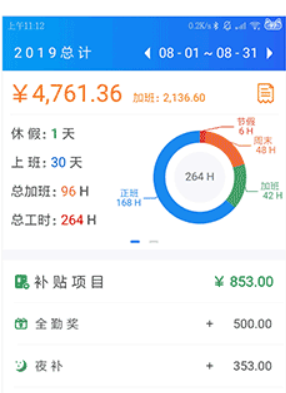 1、日历视图呈现每月工时情况,正班与加班记录一目了然,便于查看。