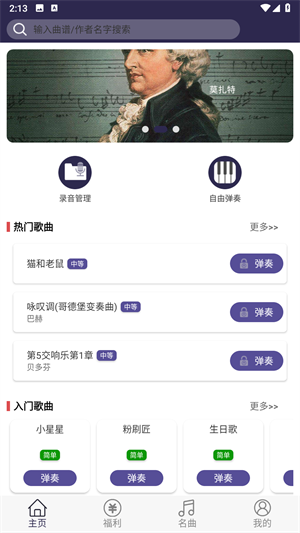 3、进入名曲专区,这里有世界名曲供你弹奏。
