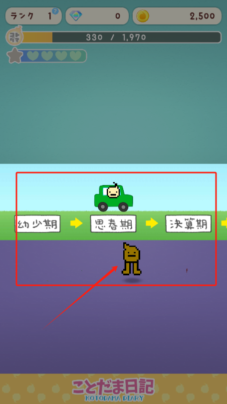 3、看红框里的小人,这是角色成长的三个阶段,从幼少期到思春期再到决算期。