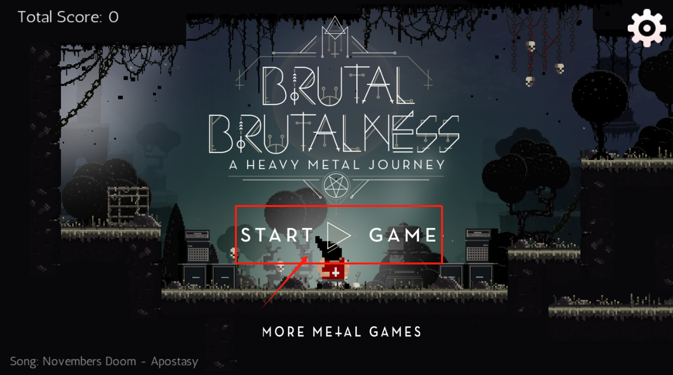 1、点击红色的START GAME按钮开启游戏,下方展示着其他游戏的推荐内容,整体背景风格较为暗黑。