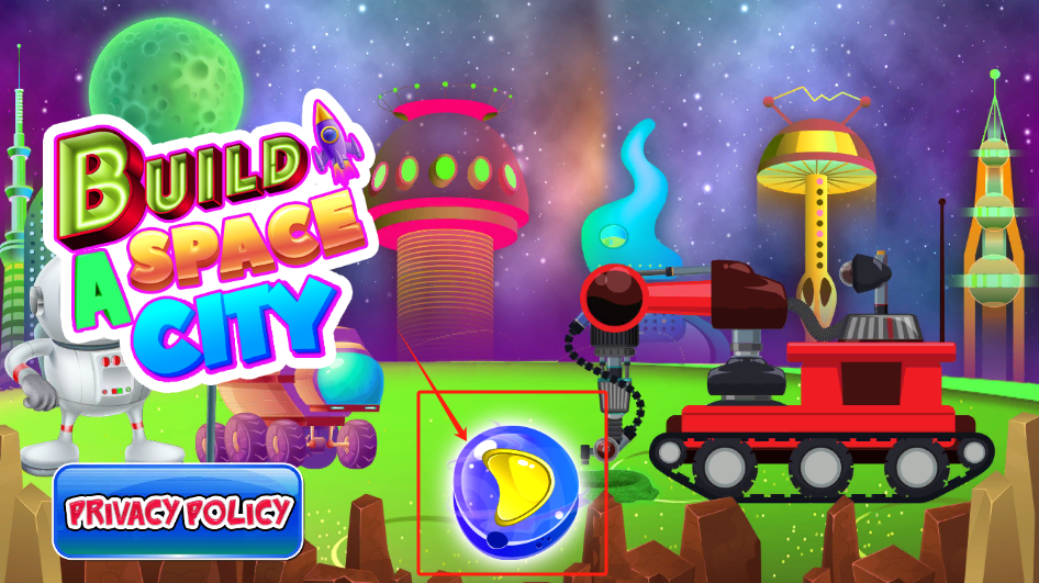 1、点红框里的蓝色球体,开始建造太空城市,背景有宇航员和机械装置。