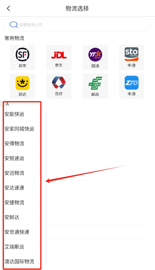 进入查询页面后,从列表中选择你快递所属的物流公司。