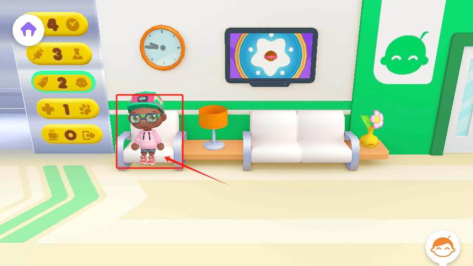 2、按数字键互动,照顾戴帽子的小孩,完成客厅里的任务。