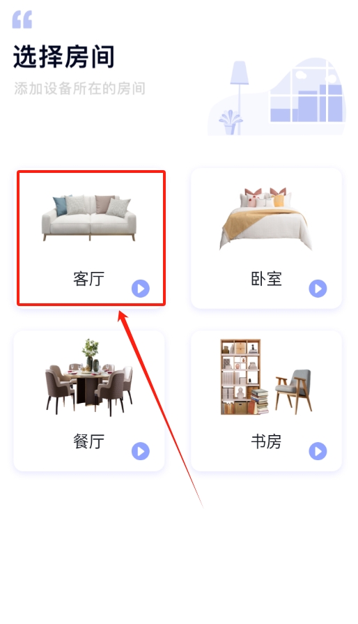 3、选好风扇后,接下来在位置选项中找到“客厅”,点击确认即可完成设置。