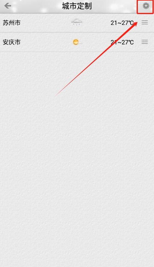 2、点完左上角,右上角还有个加号,继续点击,进入添加城市的操作页面。