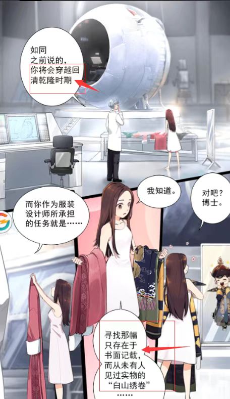 1、选好衣服后,听博士讲穿越任务,目标是找到传说中的白山绣卷。