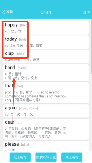 1打开小学英语单词通后,先选定对应的年级与教材版本,系统便会依据单元来呈现需要学习的单词内容。
