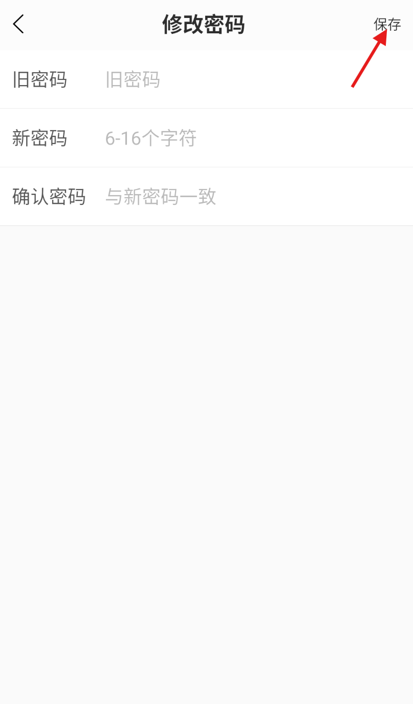 4、先输入原密码,接着连续两次输入新密码,之后点击右上角的“保存”按钮,即可完成密码修改操作。