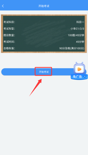 2、点击"开始考试"按钮,系统将随机生成一套完整的科目一仿真试题供用户作答。