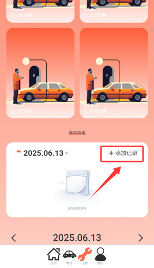 2、点击“添加记录”按钮,进入充电费用登记页面,准备填写相关信息。