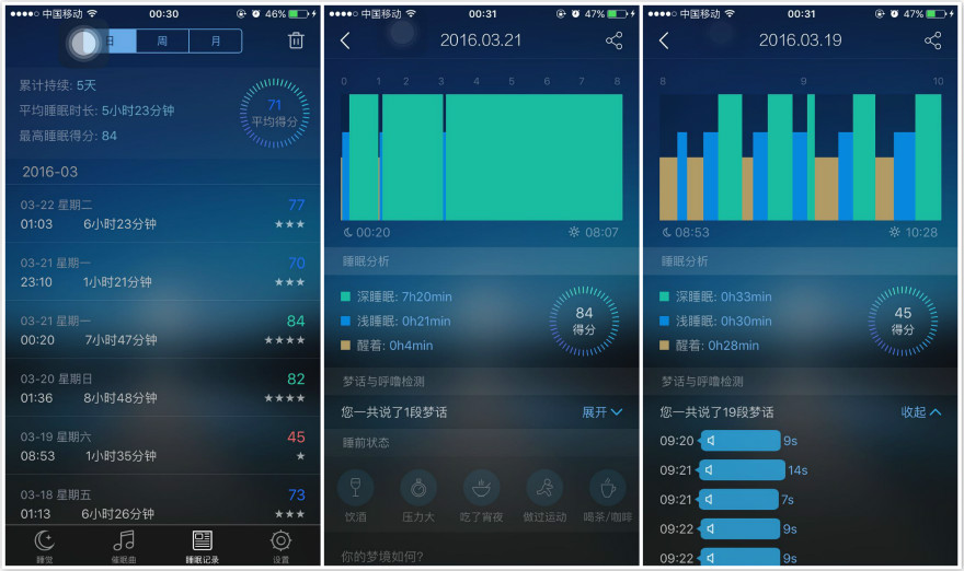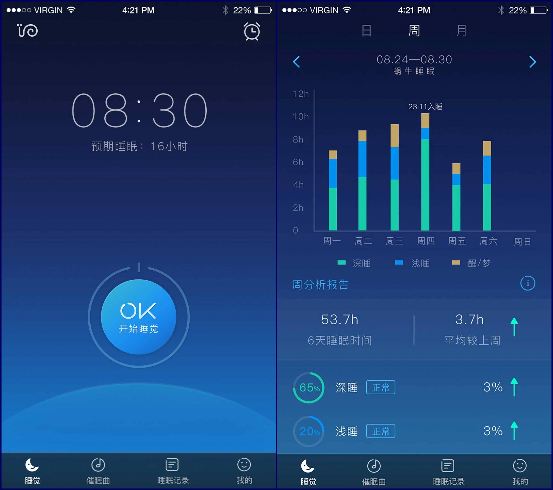 4、提供睡眠行为记录,协助形成健康作息习惯;