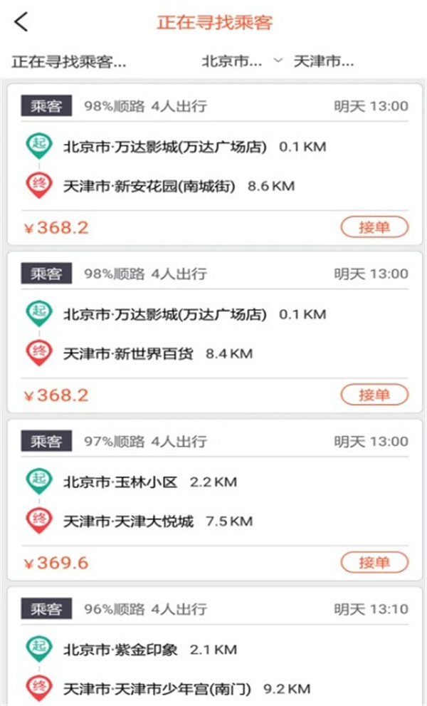 3、精准高效地对接乘客与车主需求,减少车辆空驶情况,提高出行服务的达成率。