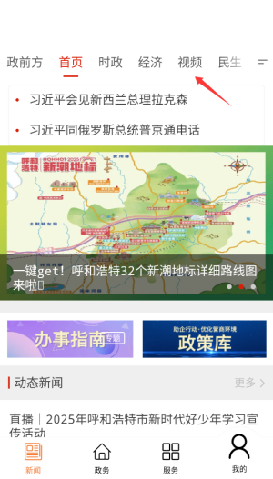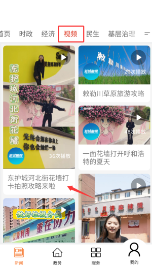 1、进入云上新城后,在首页导航栏选择"视频"栏目,这里汇集各类新闻视频内容。