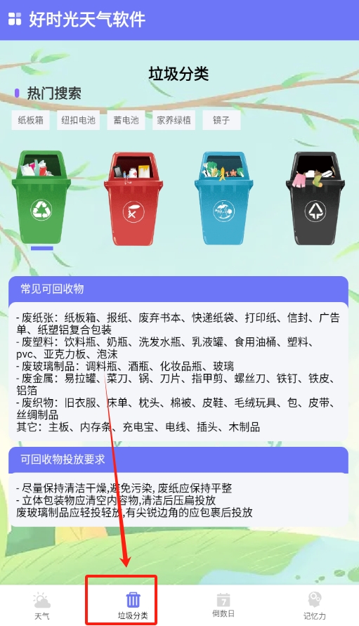 2、若想知晓垃圾分类的相关知识,可在软件内找到对应的入口,点击进入后就能查看各类垃圾的具体分类情况。
