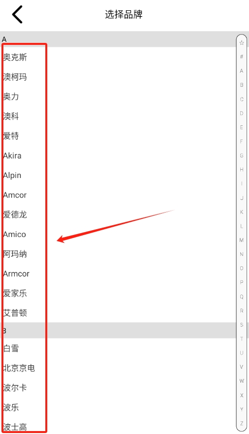 2、紧接着,页面会弹出各类空调品牌的列表,从中仔细挑选你家空调对应的品牌。