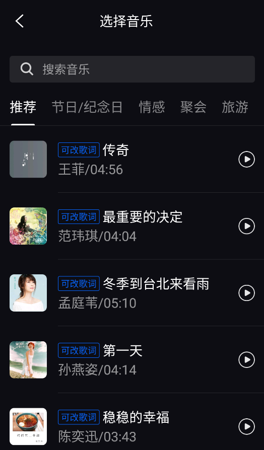 3、多平台素材库。接入正版音乐曲库,拥有超10万首免版权音乐素材,每日更新最新流行曲目,资源十分丰富。