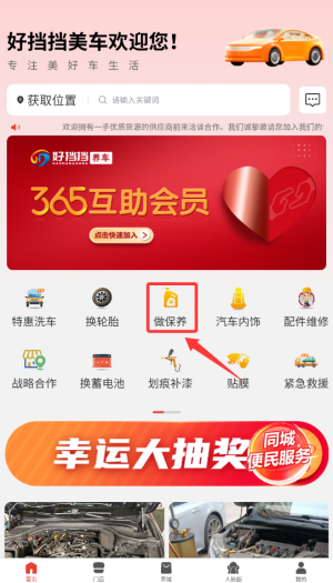 1、打开好挡挡养车应用后,在首页显眼位置找到并点击“做保养”的功能入口,即可进入对应的服务页面。