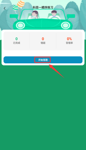 2、点击"开始答题"按钮,系统将按照固定顺序呈现各类驾考题目供用户练习。