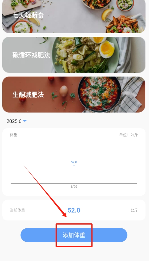 进入体重日记页面后,找到“添加体重”按钮并点击,即可准备记录体重数据。