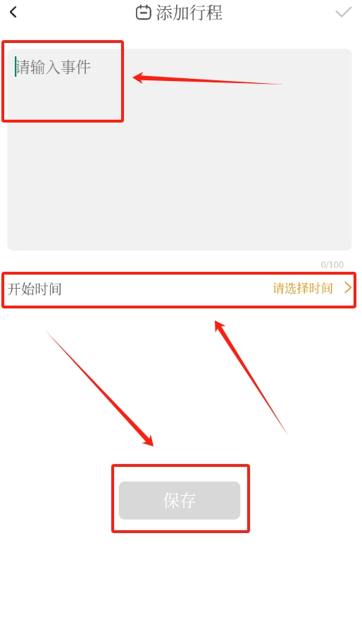 3、在日程编辑页面,输入要记录的事件内容,接着设置好对应的日期,完成后点击保存按钮即可。