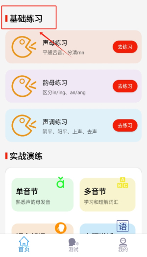 在开展基础练习时,挑选相应的练习内容,系统就会给出大量练习题,助力你循序渐进地把握普通话的发音与语调。