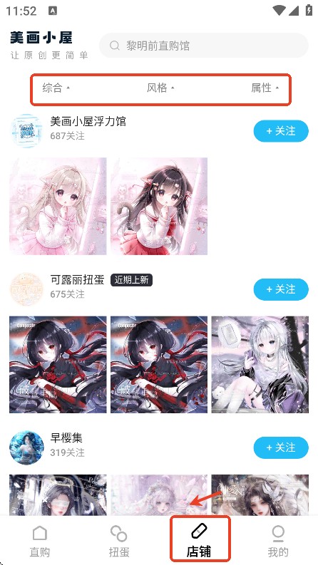 4、另外,用户也能关注多个扭蛋馆与画师,以便及时知晓他们最新推出的作品。