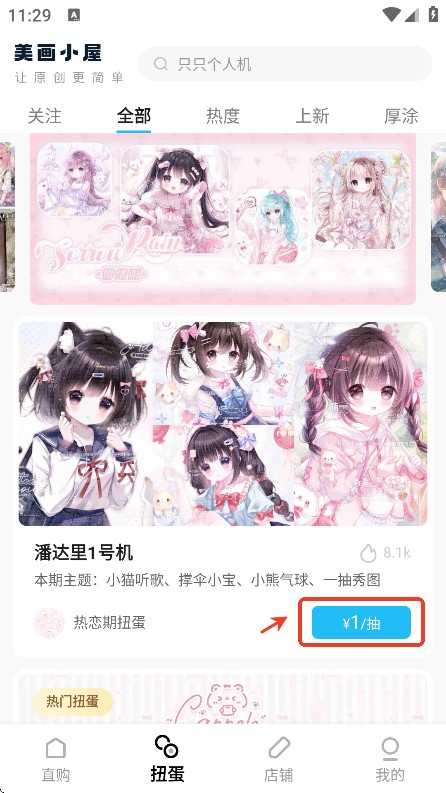 平台汇聚了众多优质扭蛋馆与画师,用户既能购买他们展出的作品,也能第一时间获取上新内容。像萌力周刊扭蛋馆,就是由恰咪、白鸟等知名画师联合打造的,为用户提供了多样的选择。