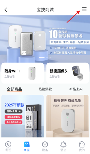 1、打开宝技智联,找到底部导航栏里的“商城”选项,轻点一下进入商城页面。