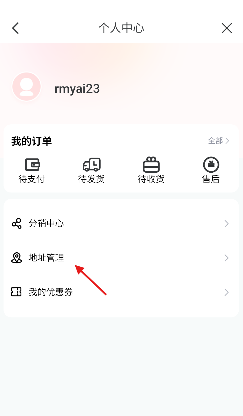 4、进入个人中心后,浏览页面上的功能选项,找到“地址管理”板块并点击进入其设置页面。